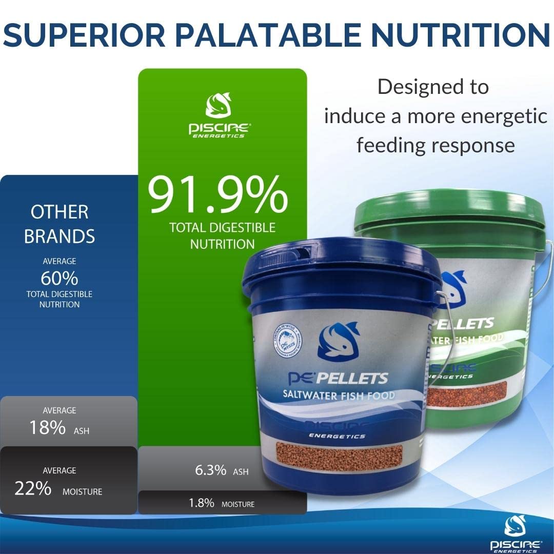 The first and only pellets ever to be formulated with fresh PE?MYSIS shrimp as the leading ingredient! Hand crafted in small batches at the Piscine Energetics laboratory in British Columbia, Canada; PE?PELLETS are an extremely palatable, digestible, and nutritionally complete fish food designed to enhance coloration and induce an energetic feeding response in all varieties of saltwater aquarium fish. Piscine Energetics? unique low-temperature manufacturing process results in the preservation of nutrition during production, protecting the integrity of the fresh PE?MYSIS. With PE? MYSIS as the leading ingredient, PE?PELLETS have an ideal fatty acid profile and healthy amounts of digested phytoplankton for aquarium fish. PE?PELLETS offer convenience for you and high palatability for your fish!