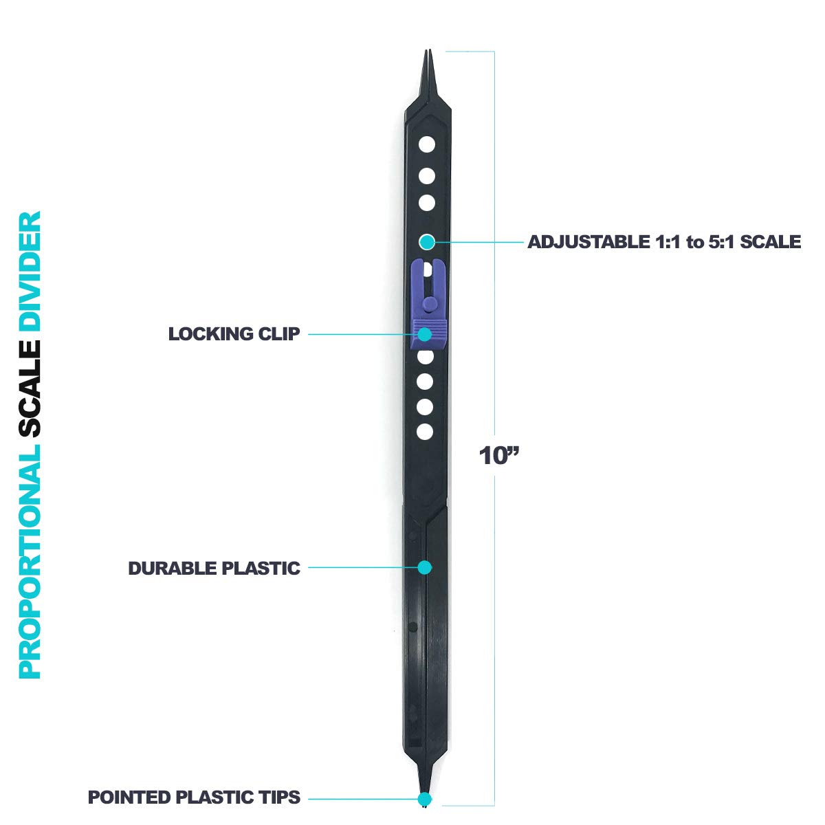 • Proportional Scale Divider – The Pixiss Proportional Scale Divider tool can be used to transfer subject matter onto your canvas or paper while keeping the proportions. Easy to use. Increase, decrease or measure the size of a subject to draw. The proportional divider is 10″ x 0.5″ x 0.25″.