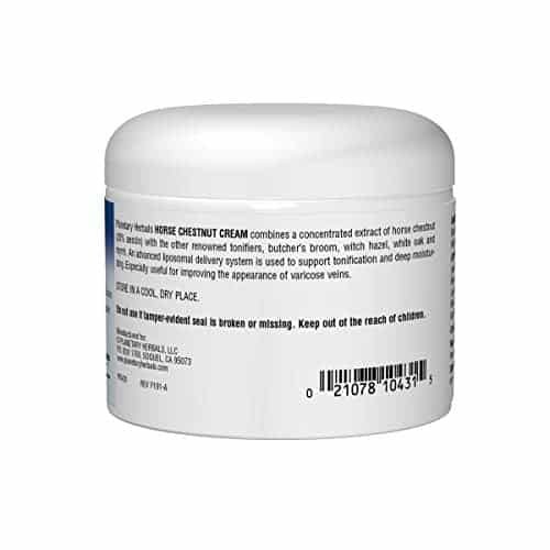 Planetary Herbals Horse Chestnut Cream combines a concentrated extract of horse chestnut (20% aescin) with the other renowned tonifiers butcher’s broom, witch hazel, white oak and myrrh. An advanced liposomal delivery system is used to support tonification and deep moisturizing. Horse Chestnut Cream is especially useful for improving the appearance of varicose veins. Lifestyle Recommendations: To support vein health, avoid excessive standing or sitting in place and elevate your legs twice a day. Exercise regularly; walking or swimming is ideal. Supplement the diet with bioflavonoids, which support cappilary integrity.