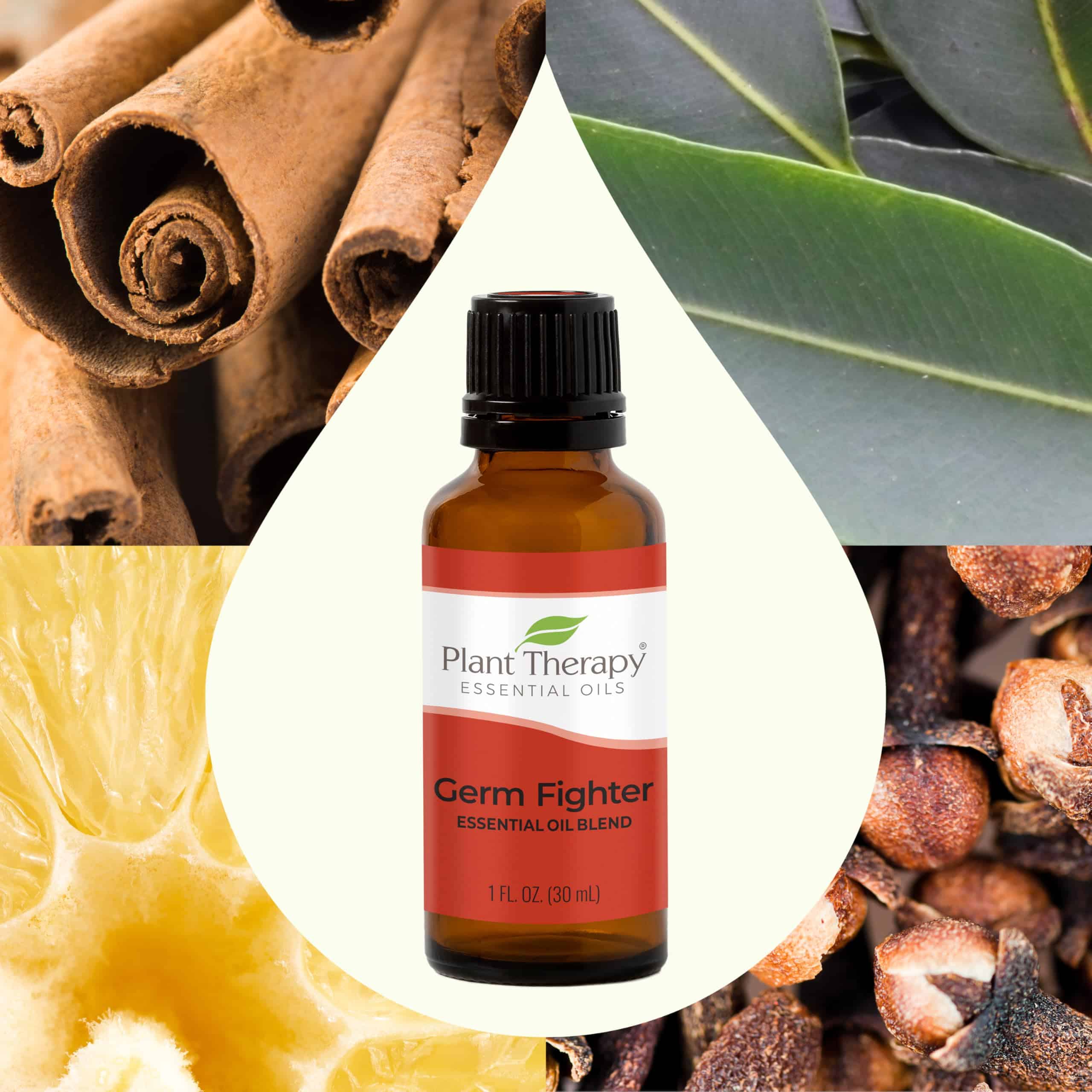 - DEFENSE SHIELD FOR YOUR IMMUNE SYSTEM: Germ Fighter essential oil is a natural, organic blend of Lemon, Clove Bud, Eucalyptus Globulus, Cinnamon Cassia, Rosemary 1,8-Cineole. It?s designed to support your immune system in fighting off germs; providing you relief and keeping you in good health.