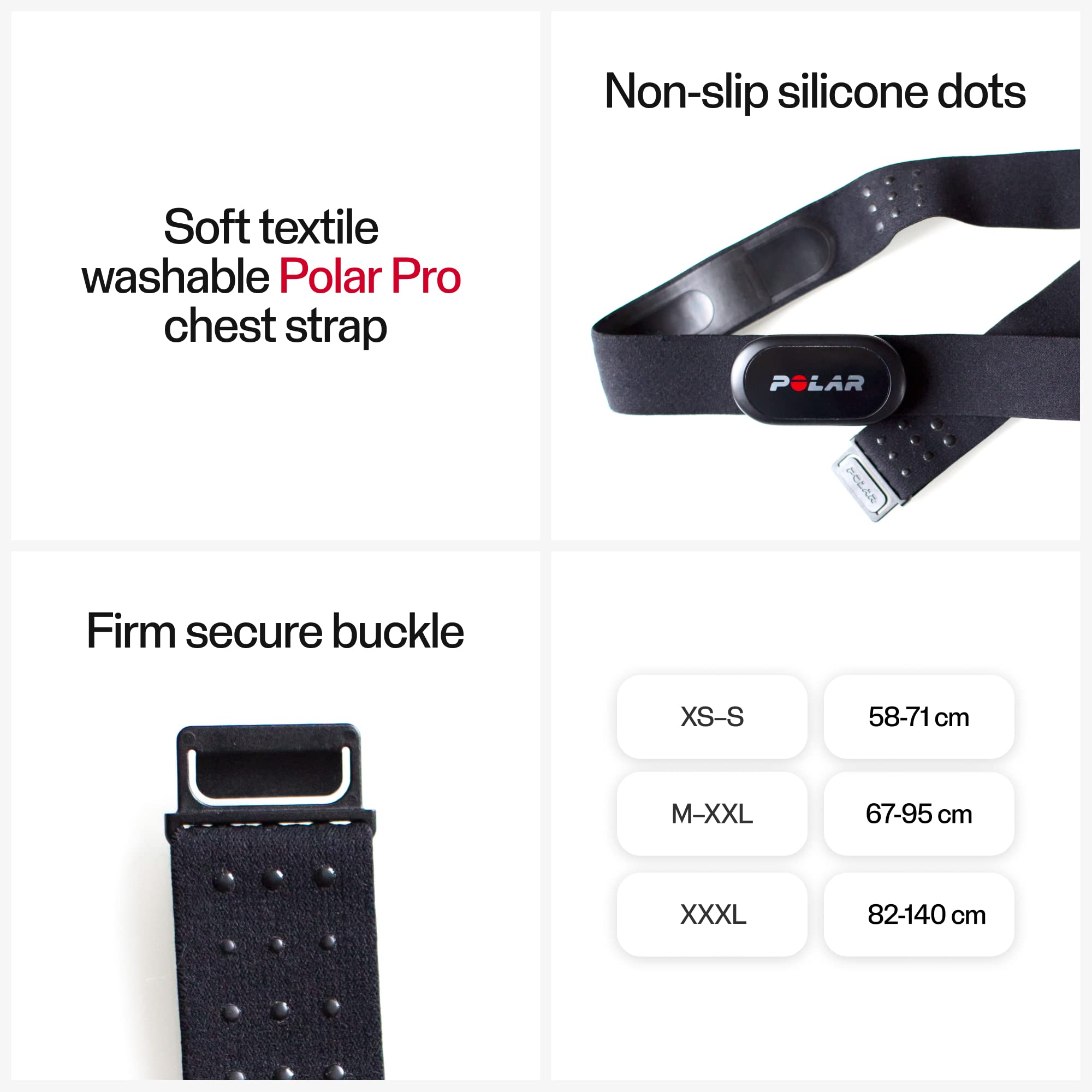 Polar soft strap the Polar soft strap is the most comfortable chest strap for measuring your heart rate. Comprised of soft fabrics covering the adaptive sensor, the strap is extremely sensitive to your heart’s signals, meaning that readings are quick and accurate. Compatible with all Polar heart rate sensors that use the snap attachment method. Size M-XXL fits a 26-36 inch chest.
