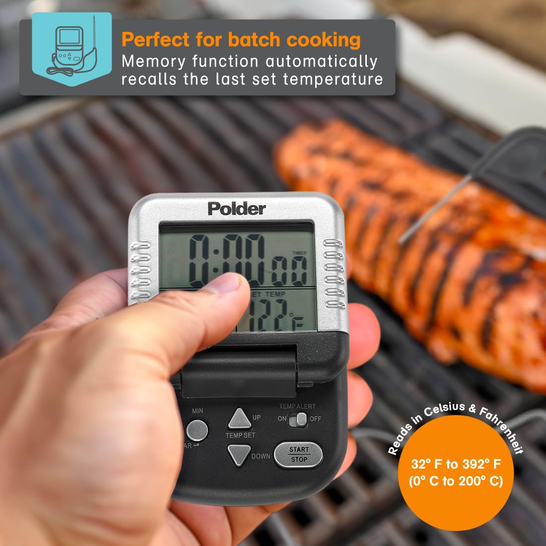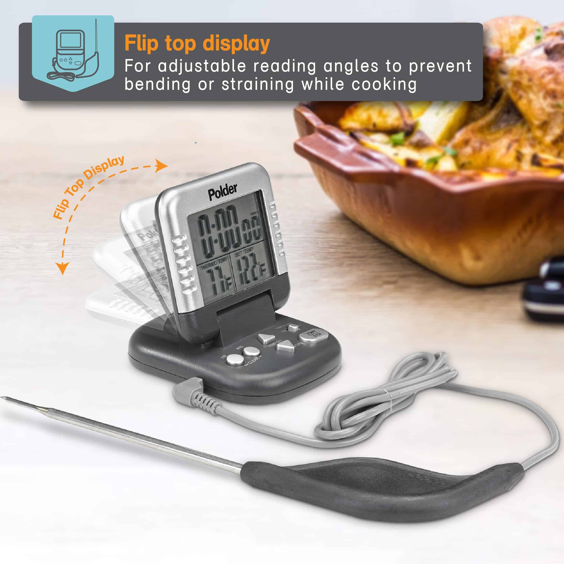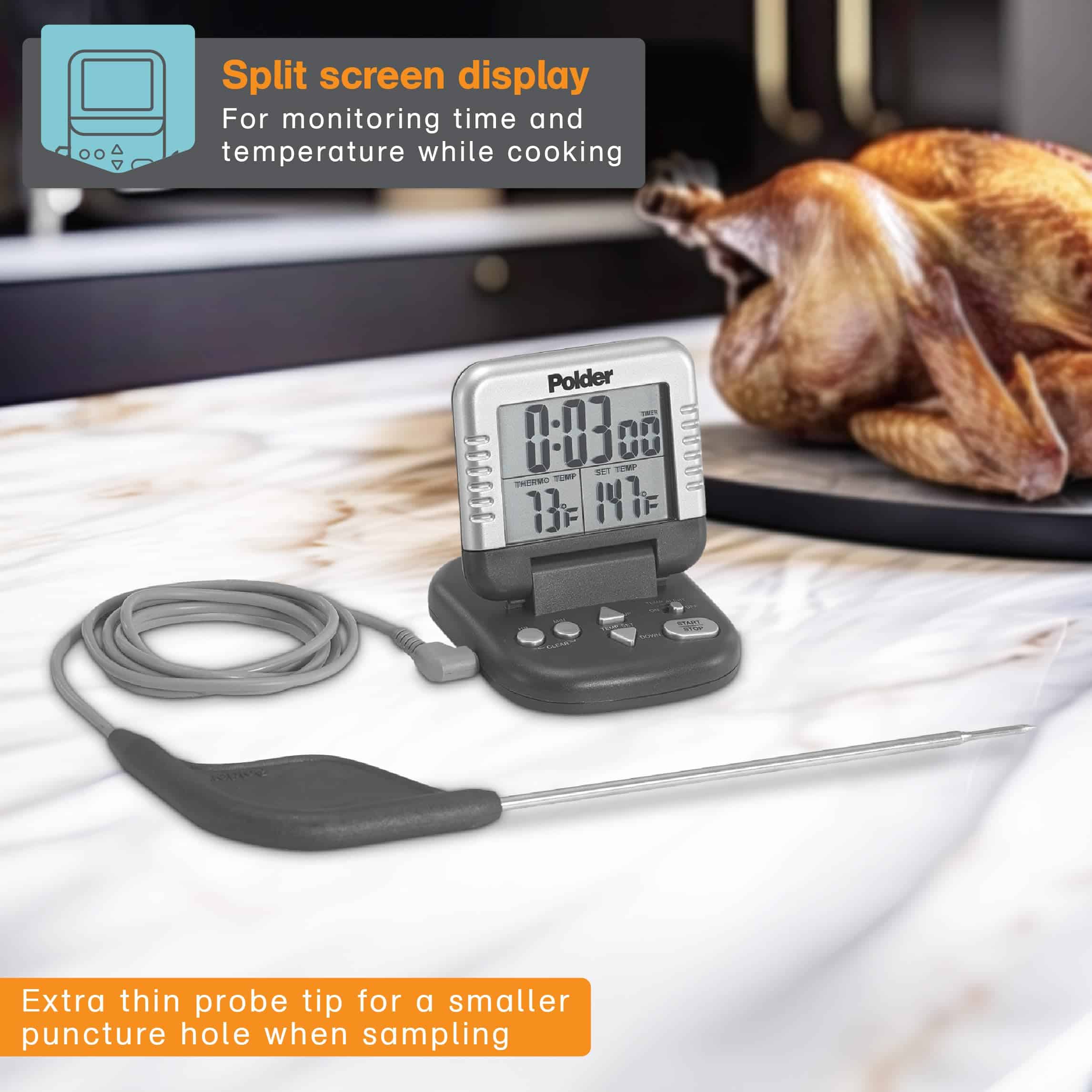 - Digital Meat Thermometer: Let your culinary skills shine and cook up some delicious meat with Polder’s Classic Digital Thermometer and Timer! The 24-hour countdown timer can also be used together with the thermometer or independently.