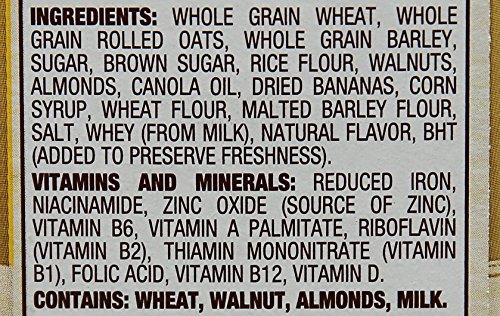 Great Grains Banana Nut Crunch is a crunchy, flaky cereal with added walnuts, almonds, and dried bananas to balance the delicious, wholesome flavor. Made with high quality ingredients, no high fructose corn syrup, artificial flavors or colors, it?s the perfect way to start your day. *at least 48g recommended daily