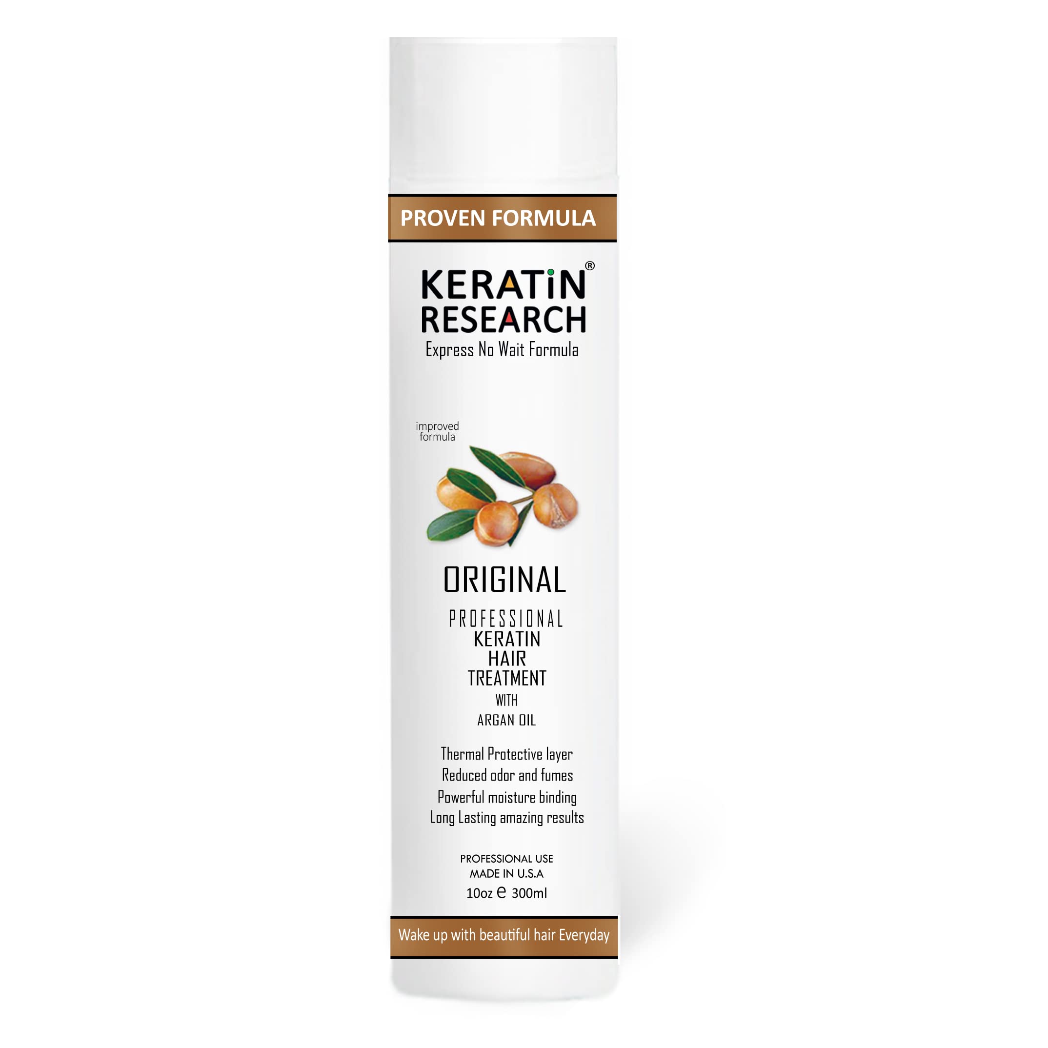 • 10 oz Bottle. Long Term amazing results will leave hair elastic, flexible, and soft with a naturally vibrant shine. Keratin Research’s Original Formula straightens and smooths your hair for 4-6 months. No Need to wait 3 days- Express formula.