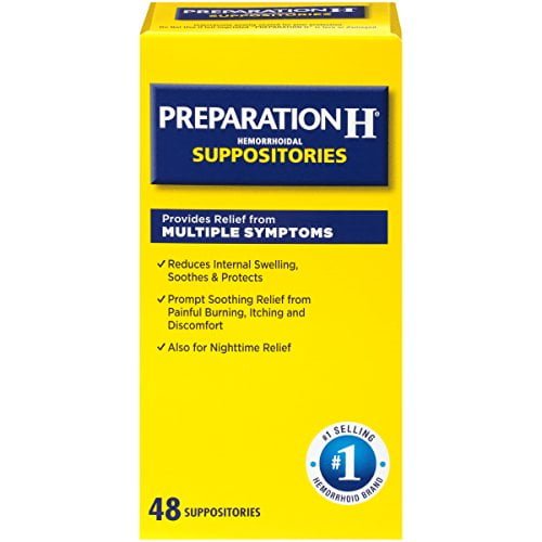 If you have internal hemorrhoids, Preparation H Suppositories provide prompt, soothing relief from painful burning, itching and discomfort. Preparation H Suppositories provide effective nighttime relief and reduce internal swelling, shrink swollen hemorrhoidal tissue and work immediately to protect against further irritation. Preparation H is the Number 1 doctor recommended hemorrhoid OTC brand.