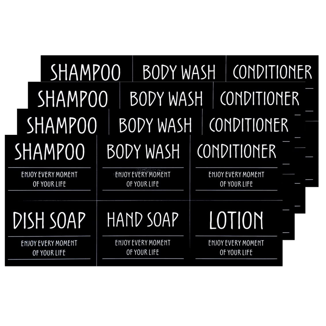 - These waterproof stickers allow us to take them off easily without leaving a trace, just simply paste it and you can get a fun, elegant and reminding shampoo bottle or hand cream travel bottle, no more worrying about mixing up shampoo
