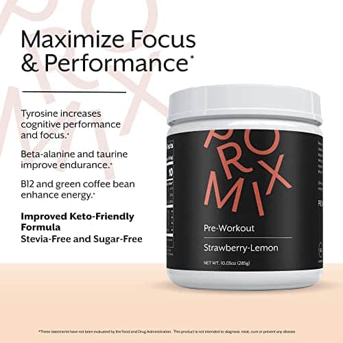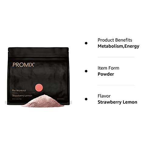 Promix Pre-Workout Powder, Strawberry Lemon – Maximize Focus & Performance – Helps Muscle Gain, Endurance & Enhanced Energy – Vitamin B12, Caffeine, Beta-Alanine & L-Tyrsosine – Gluten & Dairy-Free