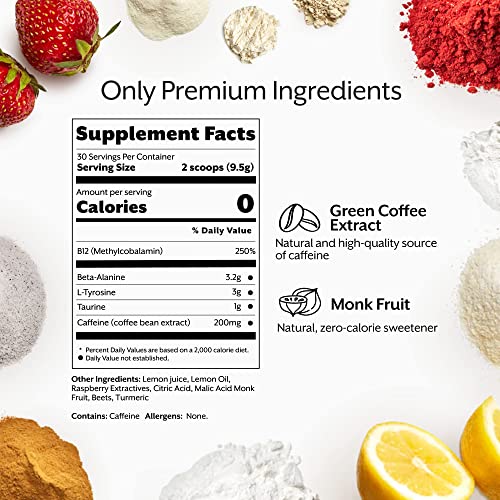 • Keto-Friendly Formula: Our improved pre-workout formula is keto-friendly, sugar-free, and stevia-free. Made of green coffee extract (natural and high-quality source of caffeine), lemons (natural source of vitamin C), strawberries (antioxidant benefits), and monk fruit.