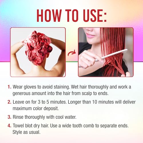 - Vivacious color in ONE wash: Enjoy striking colors, vibrant shiny hair in every wash! Leave it on for 10 to 15 minutes for a more amplified effect, or 2 to 5 minutes for a less intense look, or rinse immediately for a subtle touch-up! Can be used everyday or when needed.