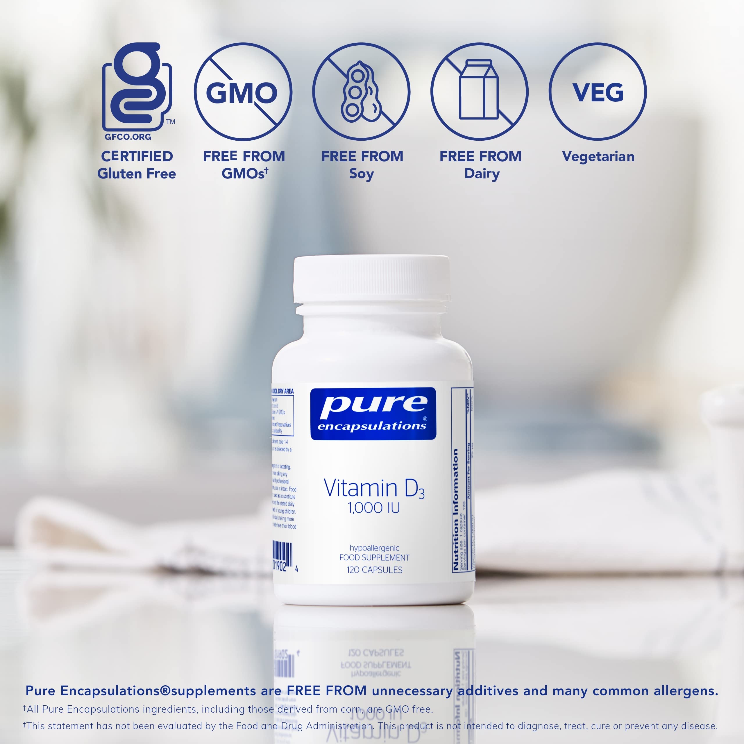 - Pure Difference: What we leave out matters, too; Pure Encapsulations products are FREE FROM common allergens, artificial or unnecessary ingredients, and GMOs