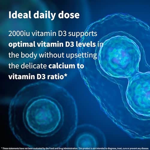 - IDEAL EVERYDAY DOSE: 2000 IU vitamin D3 supports optimal levels of vitamin D3 in the body without upsetting the delicate calcium to vitamin D3 ratio