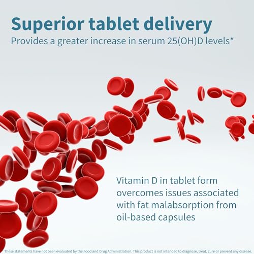 - OPTIMAL, EASILY ABSORBED, TABLET FORM: overcomes issues associated with fat malabsorption where a greater increase in serum 25(OH)D level is obtained from vitamin D3 delivered in tablet form (cholecalciferol) compared to oil-based capsules