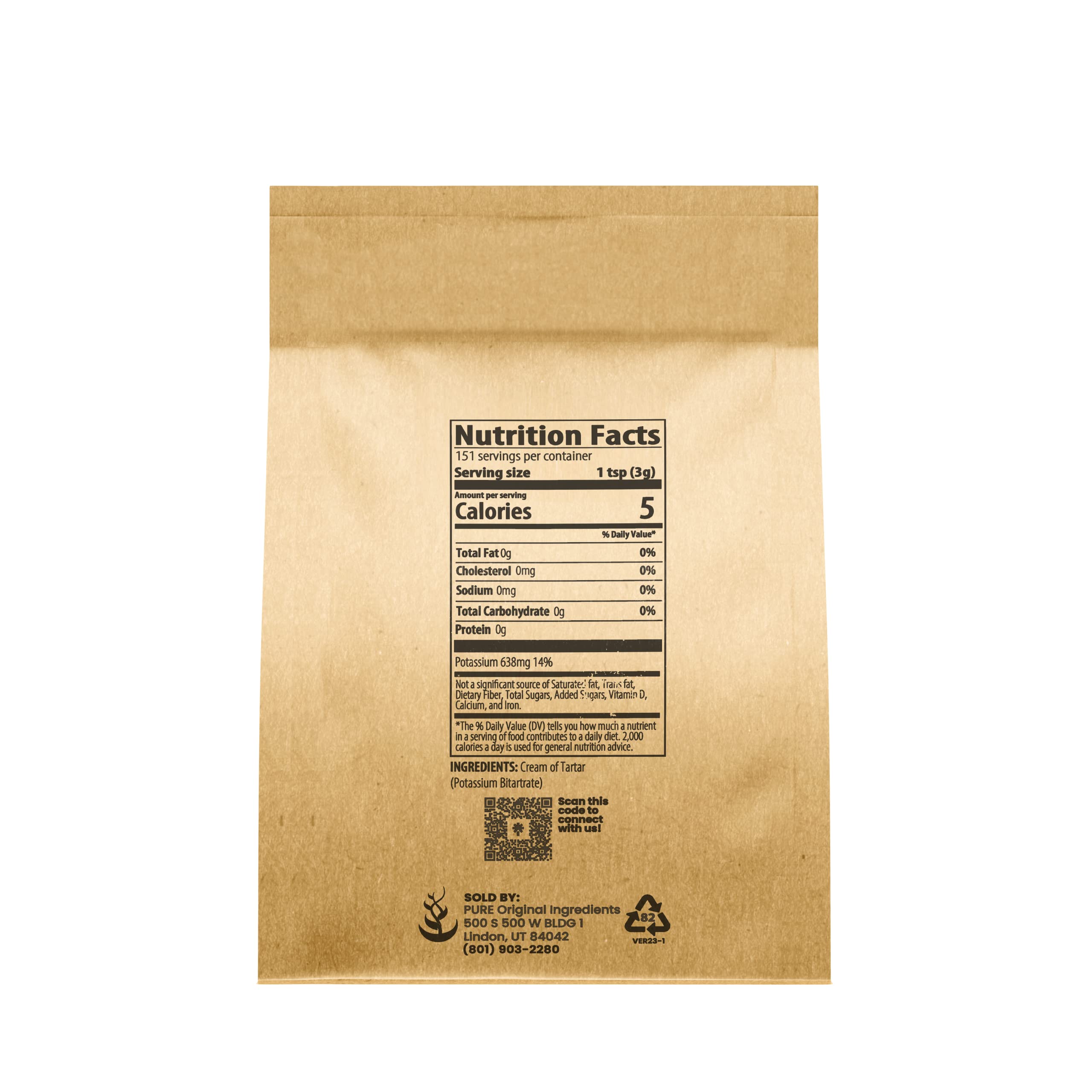 Pure Cream of Tartar is a Baking Necessity that can be Used for Everything From Baking To Stabilizing Egg Whites To Making Your Own Baking Powder or Bath Bombs. MULTIPLE USES: i. Help Vegetables Maintain Color When Boiling ii. Leaven Cakes, Cookies, & Quick Breads iii. Stabilize Egg Whites While Beating iv. All-Purpose Cleaning Scrub v. Stabilize Whipped Cream vi. Polish Metal vii. Bath Bombs viii. & More! HIGHEST QUALITY CREAM OF TARTAR: i. Gluten-Free ii. All-Natural iii. Non-GMO iv. Vegan Application: Use in anything from baking to cleaning to bath bombs. Recommended Use:Cooking: Use according to instructions in desired recipe. Beating Egg Whites: Add 1/8 teaspoon Pure Cream of Tartar per egg white. All-Purpose Cleaning Scrub: Mix 1 cup Vinegar and ? cup Pure Cream of Tartar. Ingredients: Pure Potassium Bitartrate At Pure we strive to be a proactive, integral, and responsible member of our environment and community. We try to make all our packaging from natural materials like recycled, virgin, or dye-free paper. Our Natural Kraft Paper Bags are an Earth-Conscious alternative that present a lesser burden on the environment than our competitor?s plastic bags. 100% MONEY BACK GUARANTEE: We are confident that you’ll love our products and stand behind every item with a 100% satisfaction guarantee. If you are not satisfied with your purchase, return the product for a full refund.