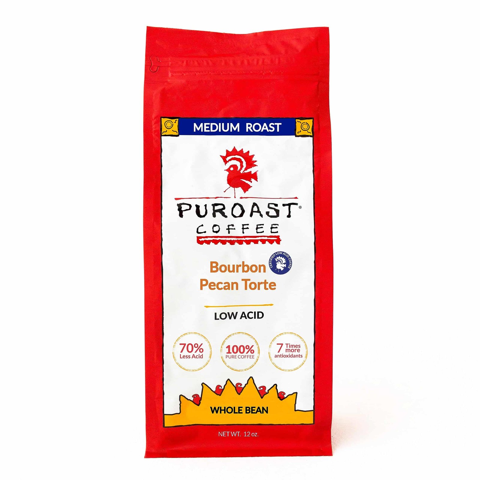 Puroast Low Acid Whole Bean Coffee, Bourbon Pecan Flavor, High Antioxidant, 0.75 Pound Bag