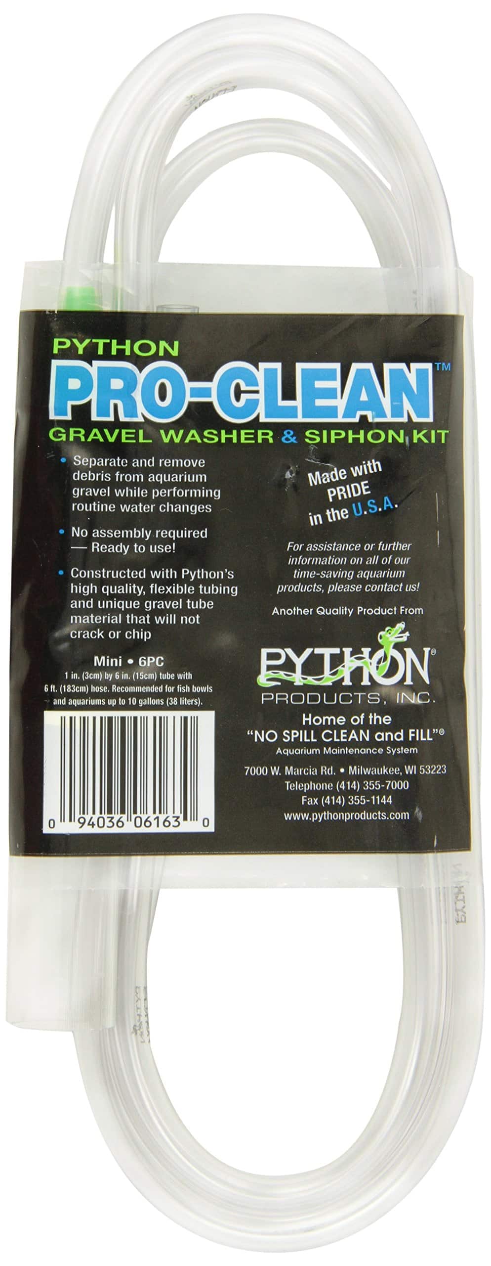 The Python Pro-Clean Gravel Washer & Siphon Kit is perfect for the beginner and experienced hobbyist alike. It effectively separates and removes debris from your aquarium while you perform routine water changes. The Pro-Clean is constructed using only the highest quality materials. The Mini size is ideal for fish bowls and small aquariums up to 10 gallons in size.