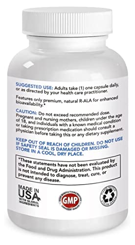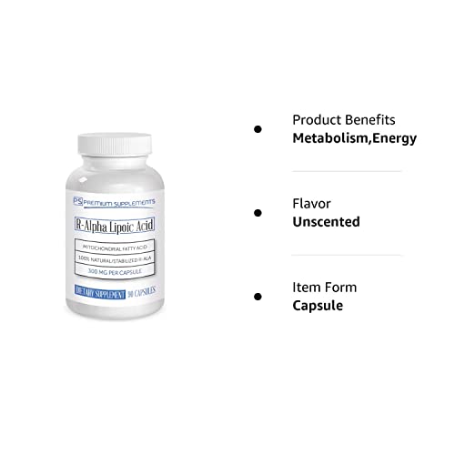 300mg Pure R-Alpha Lipoic Acid –Premium Quality! R-Lipoic acid plays an important role, the ?S? form does not occur naturally in living systems and studies clearly indicate that the ?R? form, RLA, is more biologically active than the ?S? form. Premium-supplements R- Alpha lipoic is manufactured under the strict guidelines of a GMP and FDA registered facility. Our product is a stabilized form of R-ALA, essential for energy generation by mitochondria. USA made in a GMP facility , Sourced in the USA and never from china. At Premium Supplements everything is Premium grade!
