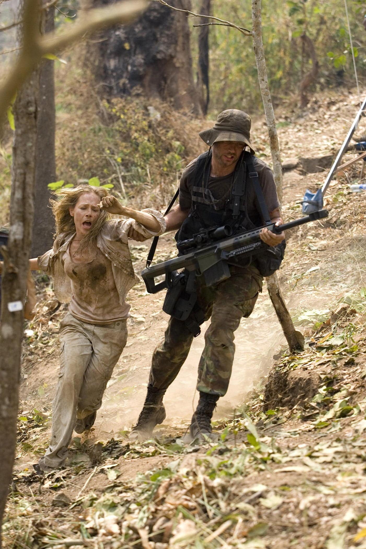 If you’ve been wondering what ever happened to ex?Green Beret superwarrior John Rambo since he singlehandedly shot up a Pacific Northwest town (First Blood, 1982), returned to the jungles of ‘Nam to free U.S. POWs held long after war’s end (Rambo: First Blood Part II, 1985), and interrupted the Soviet invasion of Afghanistan long enough to blow lots of stuff up and rescue his old commandant from the Reds (Rambo III, 1988), then Rambo (2008) is for you. Without so much as a IV to dilute the brand name, Rambo–which is what most of us called the second, most iconic film in the series–may aspire to open a new era for a pop legend. But it’s a thoroughly mechanical attempt to reanimate a franchise that, absent the anger, frustration, and self-loathing of the post-Vietnam years, has no meaning or purpose. For some time now Rambo (Sylvester Stallone) has been putt-putting along the Thai-Burmese border in a longboat, catching exotic snakes to sell. As for the 60-year civil war in Burma between the brutal government and the Karen independence movement, he ignores it. Enter a party of American missionaries whose dewy blond spokeswoman (Dexter’s Julie Benz) asks Rambo to haul them upriver so that they can bring medical aid to the insurgents. After the requisite number of monosyllabic refusals, he does. Soon afterward the do-gooders are in a world of hurt, and he’s summoned to lead a squad of mercenaries on a rescue mission.