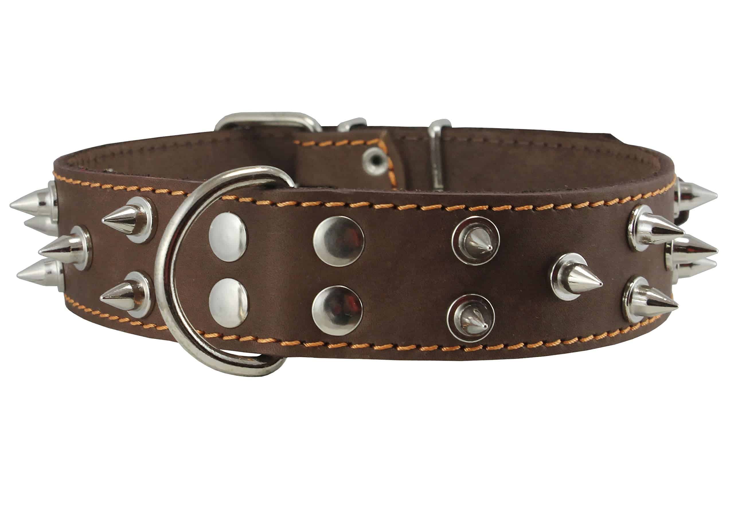 Original price was: ₹2,113.₹1,565Current price is: ₹1,565.Real Leather Brown Spiked Dog Collar Spikes, 1.6″ Wide. Fits 19″-23″ Neck, Large Breeds Ma