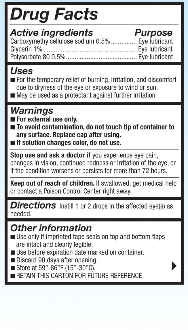 This clinically proven triple-action formula: 1. Lubricates for moisturizing dry eye relief, 2. Hydrates the eye surface cells, 3. Protects your natural tears with a lipid-enhanced drop by reducing tear evaporation.