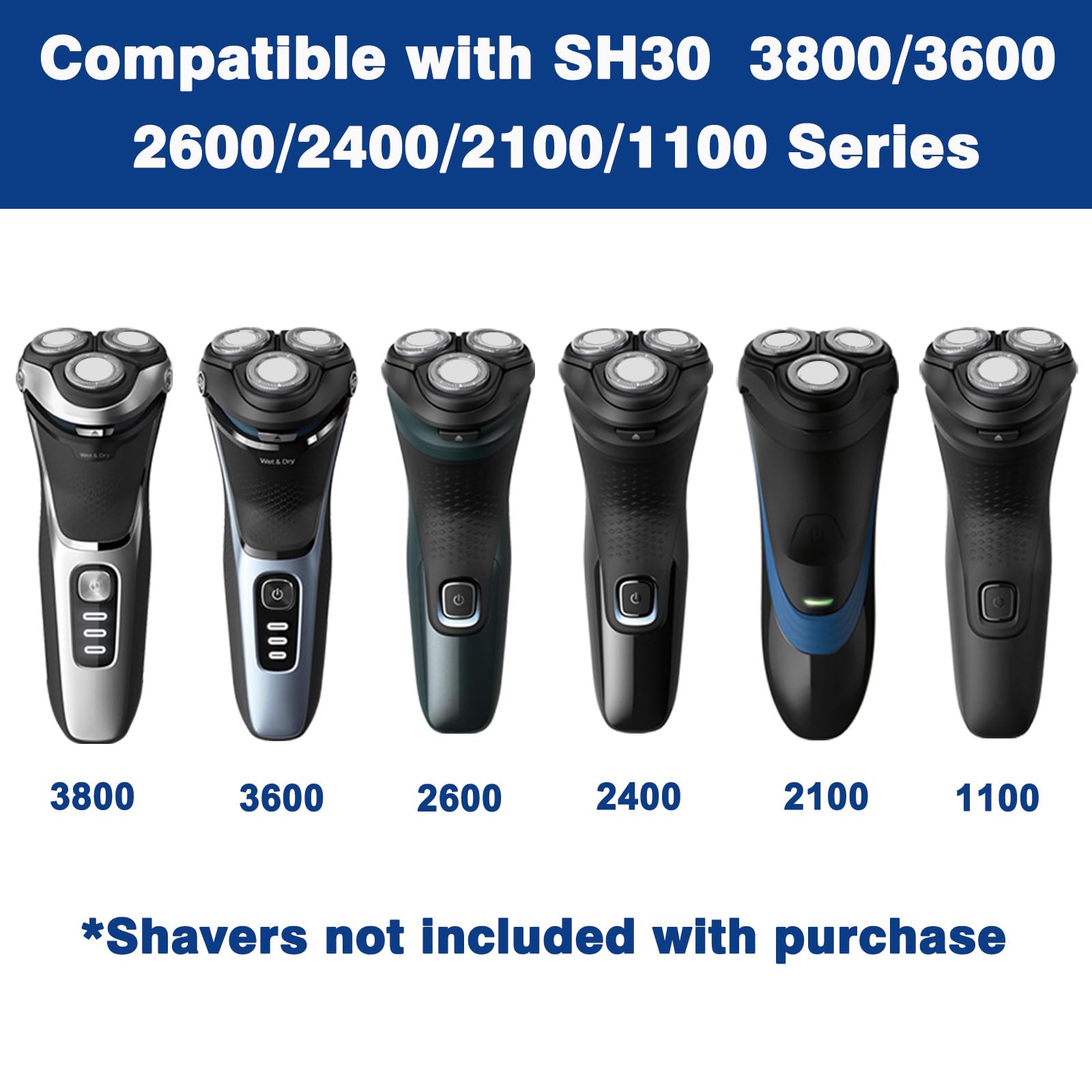 • Versatile Compatibility: These replacement heads are suitable for Philips Norelco Series 3000 replacement blades, including shavers 3800, 3600, 2600, 2400, 1100, and S738.