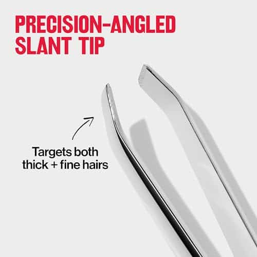 - PRECISE, ANGLED TIP TWEEZER: Large enough to shape the fullest brows and precise enough to target the finest hairs with expert precision with the sharp, perfectly aligned slanted tip