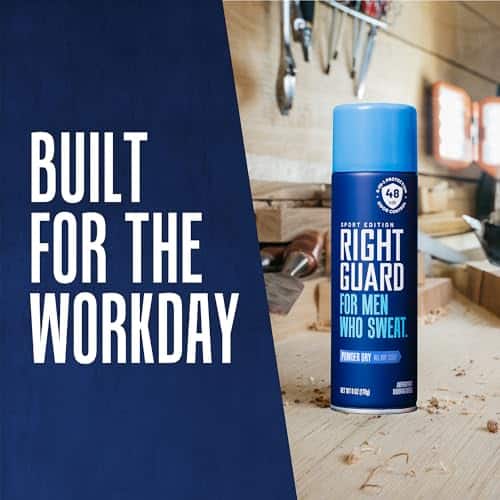 - OVER 60 YEARS OF SHIELDING SWEAT & ODOR: At Right Guard, we have over half a century of honoring sweat and hard work under our toolbelt. Explore our range of personal care products for men including Right Guard Xtreme Defense Spray Deodorant and the original Right Guard Deodorant Gel.