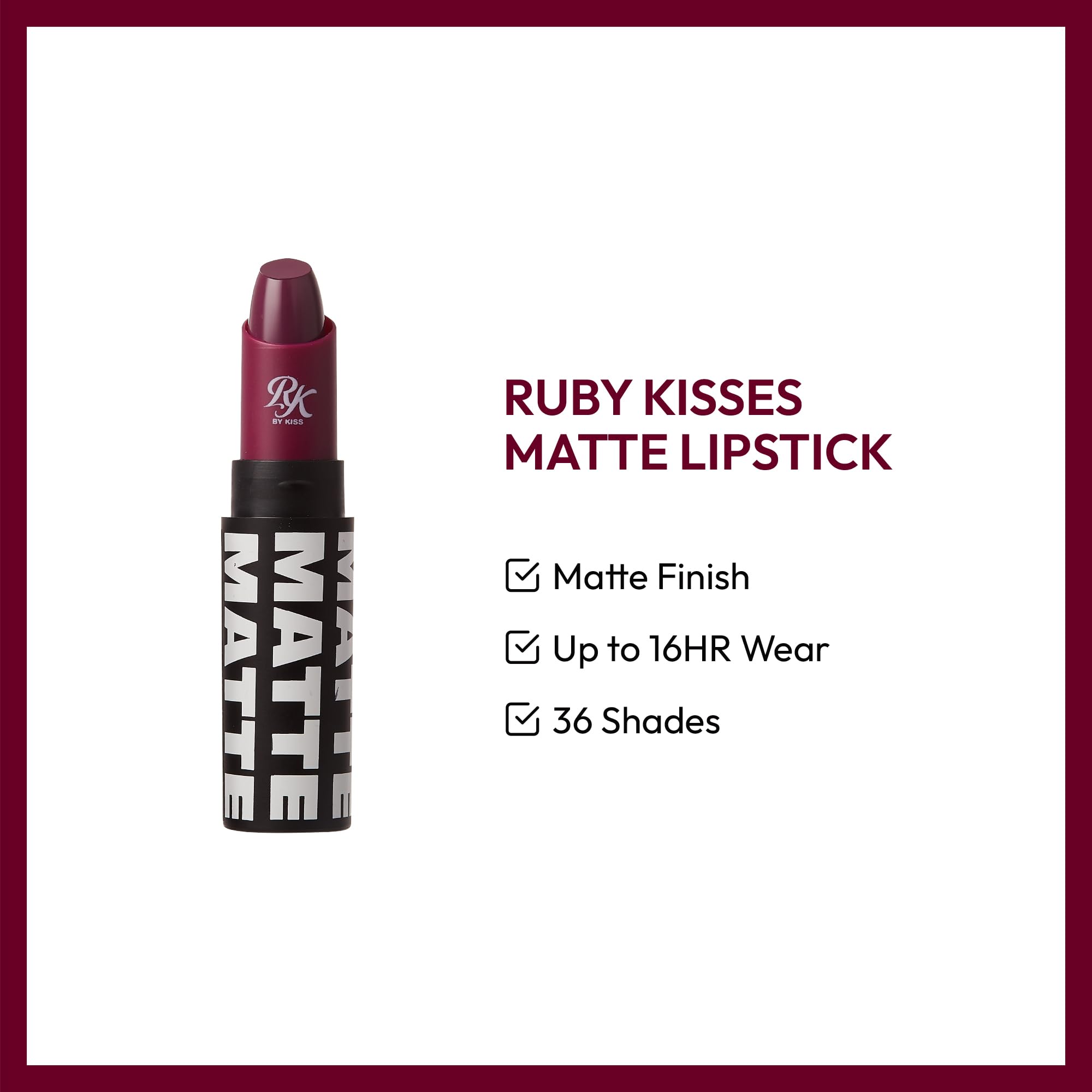 Ruby Kisses Lipstick, Matte Finish, Long-Lasting, Highly Pigmented, Smooth Apply, Full Coverage Lip Color Makeup (Vampire Red)