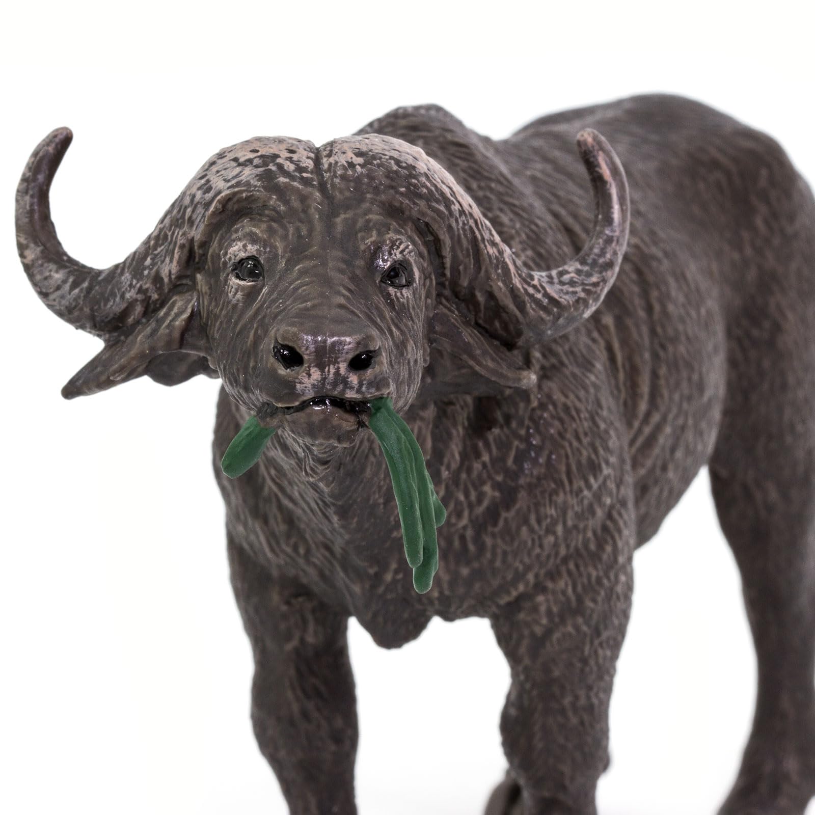 - Detailed Representation: Showcasing a mouthful of greens, the Cape Buffalo figurine is professionally sculpted and hand-painted with exceptional attention to detail, mirroring the striking features of its real-life counterpart.