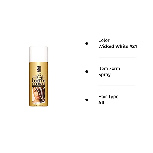 - HIGH BEAMS INTENSE COLOR WICKED WHITE: Salon Grafix High Beams Intense Temporary Spray-On Hair Color in Wicked White, is a salon-quality full coverage formula, which can be used to cover grey roots or add pizzazz to any hair design. 2.7 Oz can