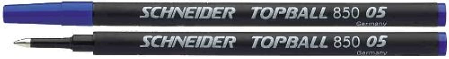 Topball 850 rollerball refills are made in Germany by Schneider. Comes only in one tip size: 0.5 mm that they describe as medium . May be listed as Topball 850 or Topball 850 05. In either case, they are the exact same refill. The Schneider Topball 850 Rollerball Refill features a conical tip made from wear-resistant that promotes comfortable and striking writing. Replacement refill for the Schneider Topball 850 and fits many other European-sized ink pens. Writes in approximate line width 0.5 MM, Blue ink, 2 Pack. Made in Germany.
