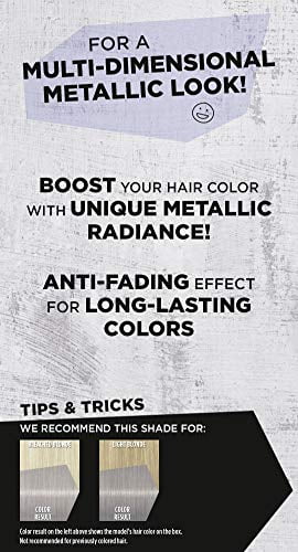 Say goodbye to boring colors! All eyes are on you with Schwarzkopf got2b Metallics permanent color. Boost your hair color with trendy metallic shades. Schwarzkopf got2b Metallic Hair Color offers a multi-dimensional look that delivers unique metallic radiance. Permanent hair color that lasts. Got2b Metallics hair dye works for all hair textures. This permanent hair color can be used on your natural hair, wigs, or extensions to express yourself! The lighter your natural or current hair color, the more metallic the hair shade results. For best results, this hair color is not recommended for all hair shades.