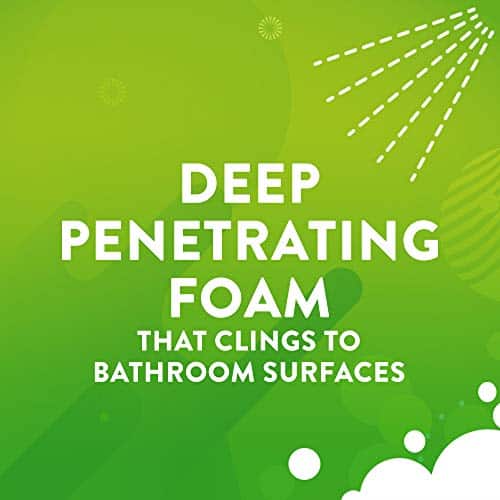 - Unique trigger dispenses a foam that clings to your bathroom surfaces