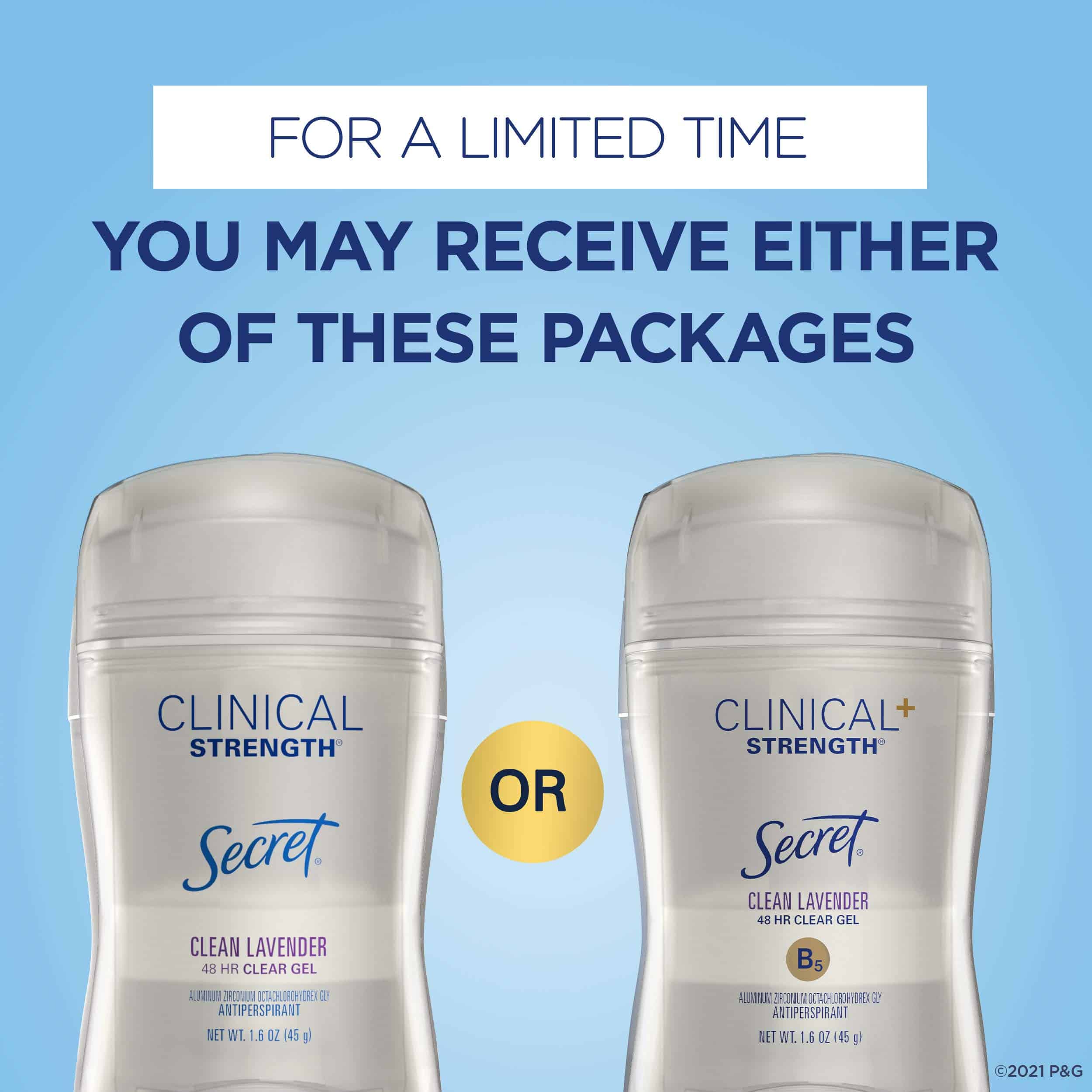 Never let them see you sweat! Formulated with skin care ingredients and provitamin B5, Secret Clinical Strength + provitamin B5 combines Secret’s clinically-proven sweat protection technology with skin-soothing conditioners that care for your skin. With 3X more sweat protection* *vs. what?s required of an ordinary antiperspirant