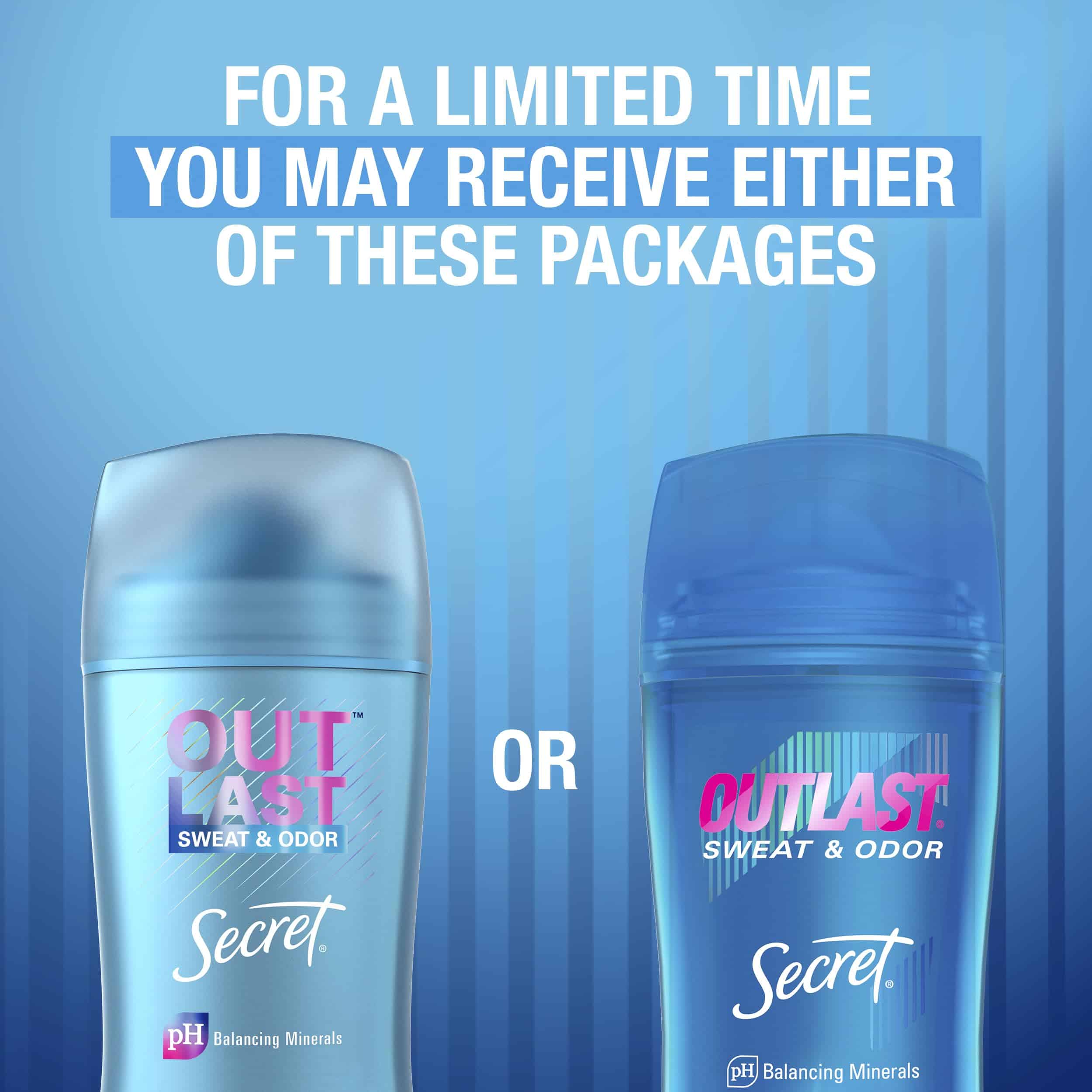 Secret Outlast offers invisible odor protection that’s 48-hours strong, all day long! You can feel confident no matter what the day may bring with Secret Outlast’s long-lasting protection, which locks away odor for up to 48 hours. Trust Secret Outlast to keep you stay fearless and fresh all day long, and longer. Invisible Solid: Protection that goes on dry. Choose Your Perfect Secret Outlast Scent