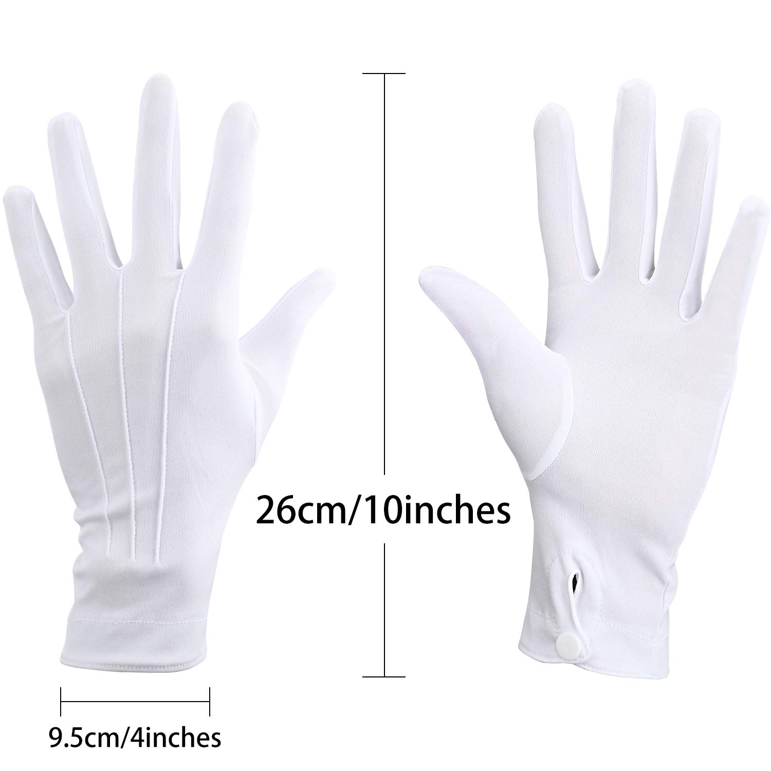 - Wide Applications: white gloves for funeral, police uniform, Halloween theme party, magician theme cosplay, honor guard, parade, catering, doorman, banquet and more, and also can be applied to inspect house cleaning, jewelry, diamond or antique