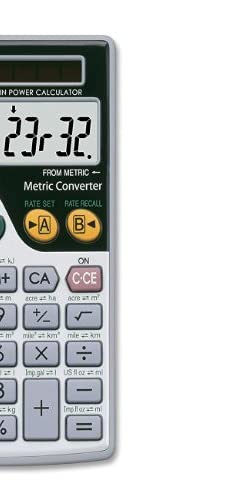 Metric conversions–making everyday life in today’s world a little easier. Sized and powered for calculations anywhere. Protective wallet case for carry-with convenience.
