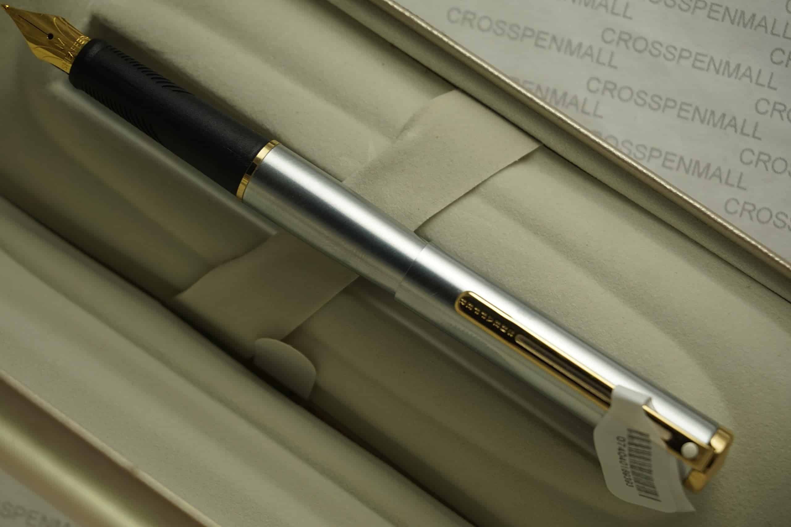 Agio Compact Fountain Pen with Medium Nib, Brushed Chrome Plate Finish with 22K Gold Plate Trim w/cartridges