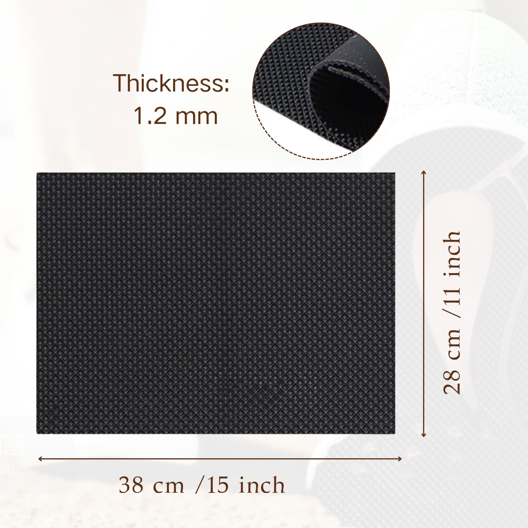 - 1.2MM Thick Rubber Sheet: this shoe rubber sole is 1.2mm thick, 15 x 11 inch / 38 x 28 cm