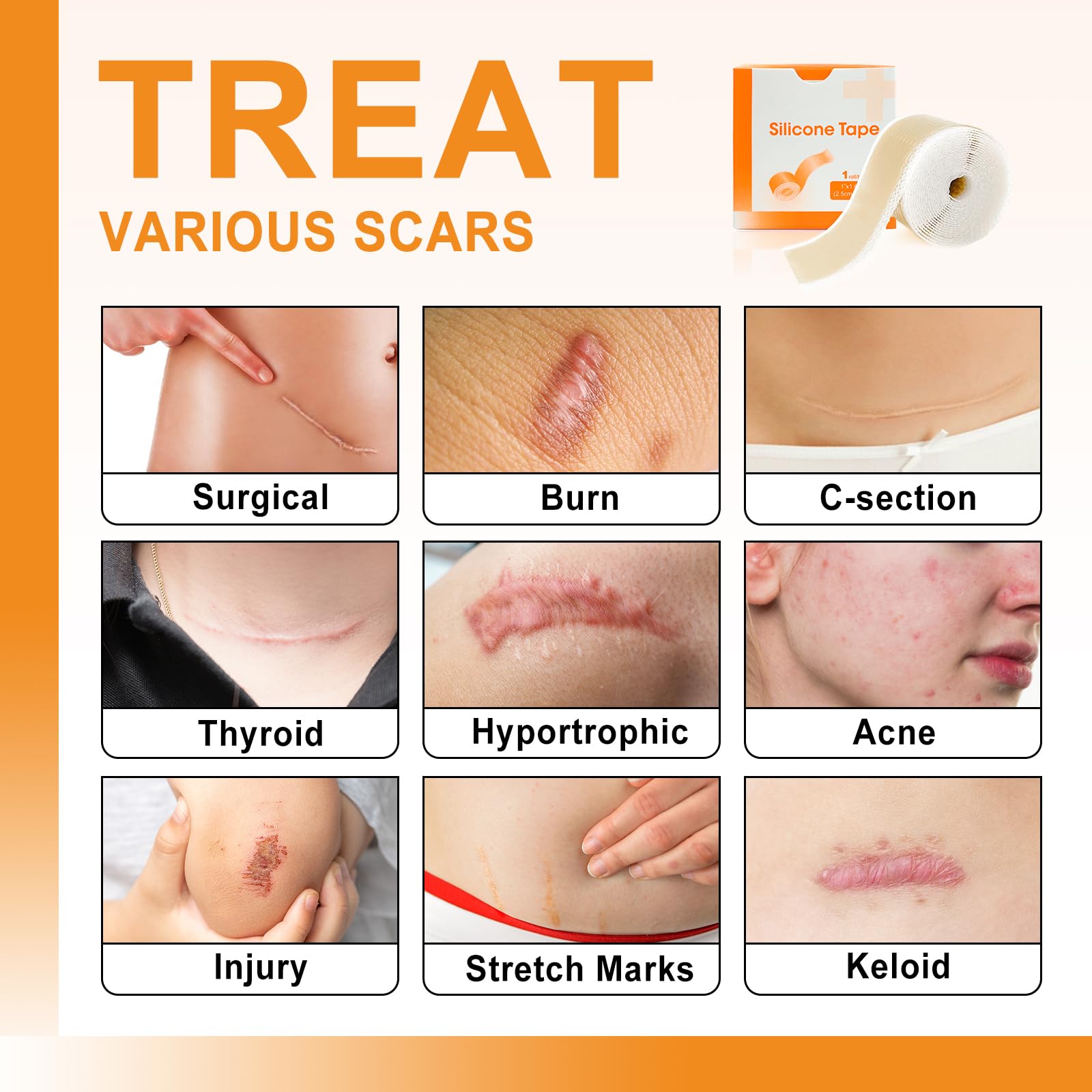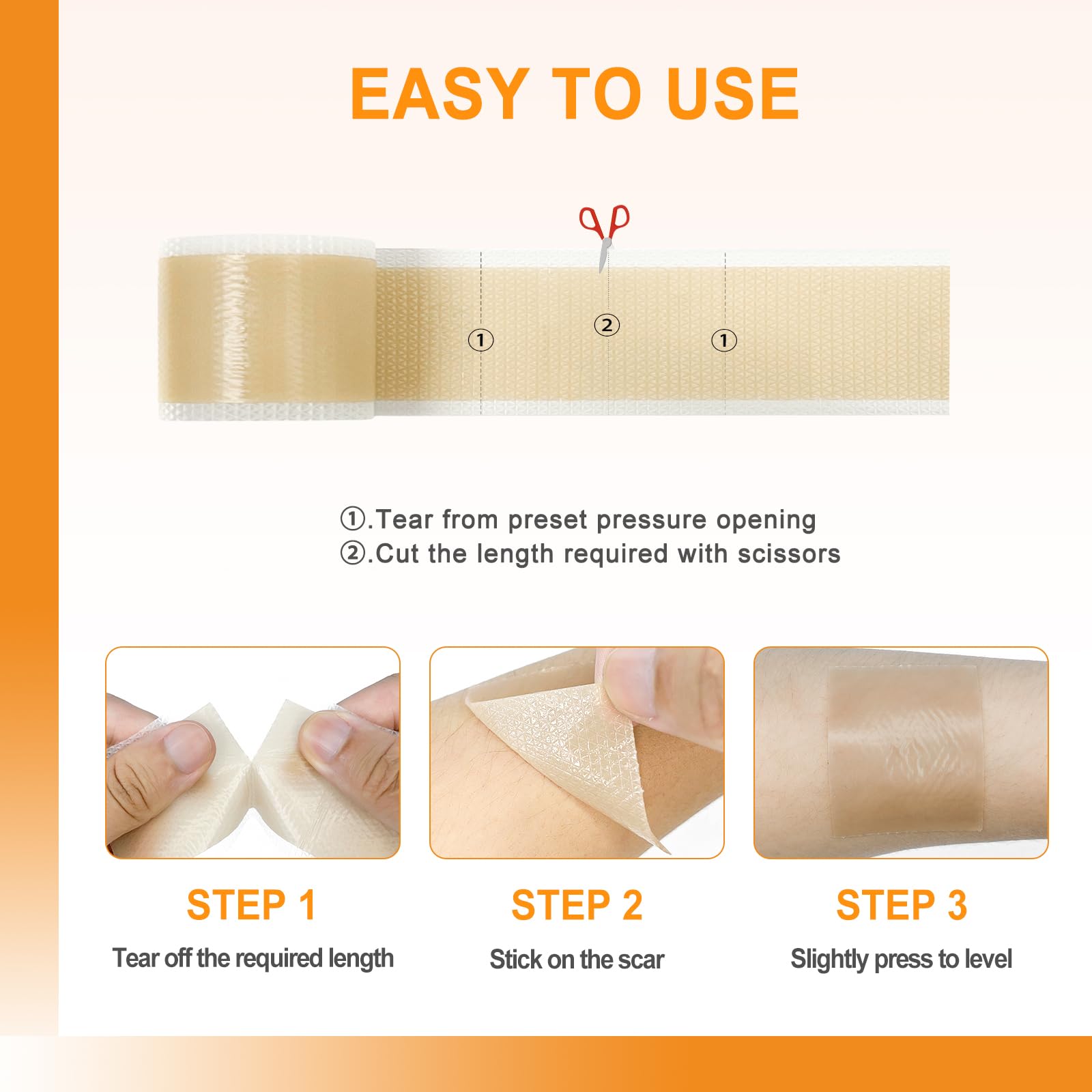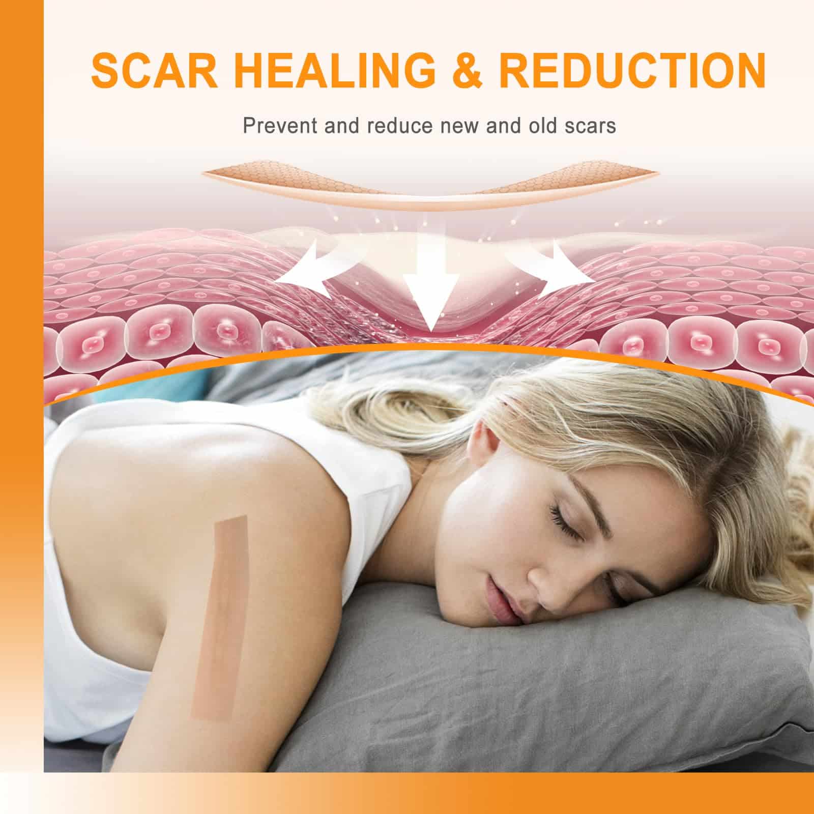 - Prevention and Reduction of Scars: Silicone scar tape can effectively reduce scars caused by surgery, burns, c-section, acne, thyroid, etc. Prevent the formation of red and swollen scars after wound healing, and relieve symptoms such as itching and pain caused by scars.
