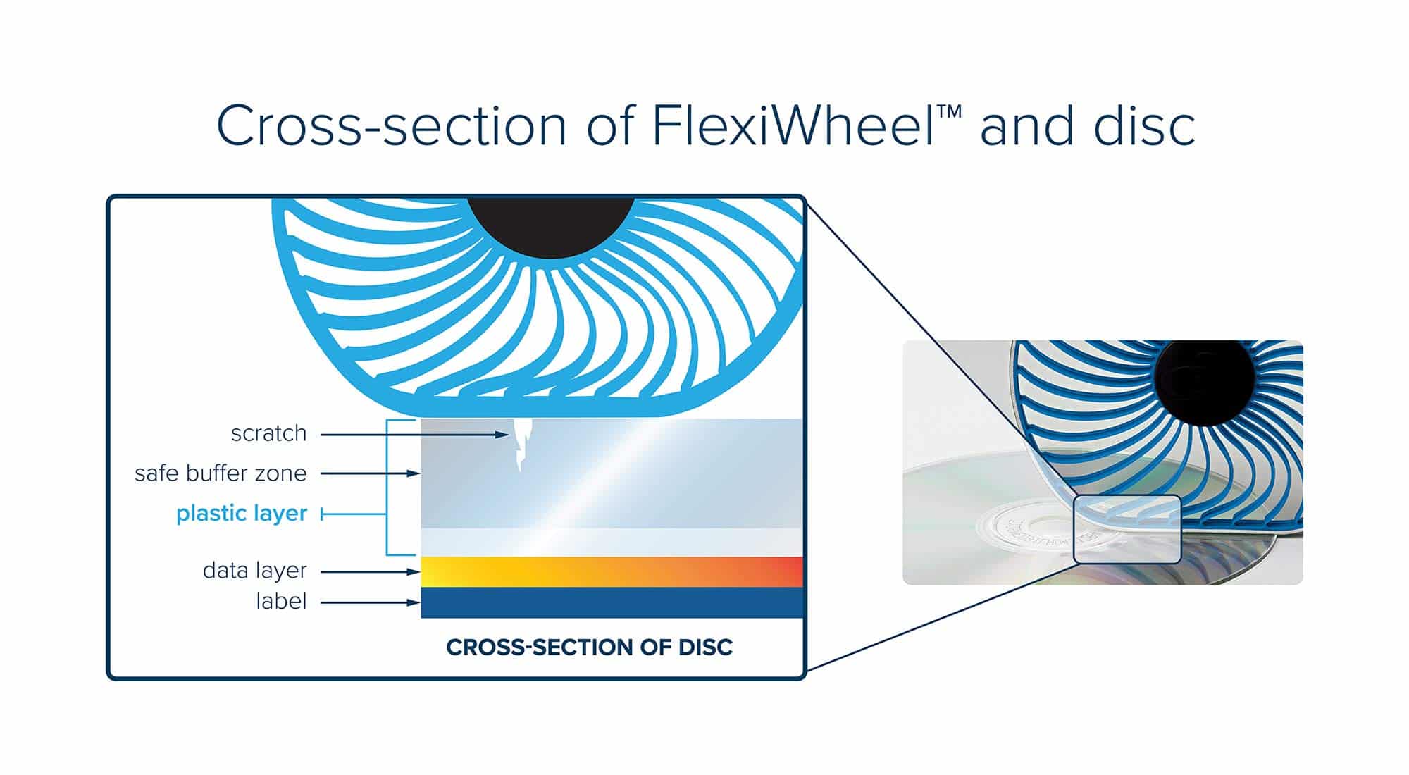 - Patented FlexiWheel repairs up to 25 discs and works gently enough to safely repair the same disc multiple times