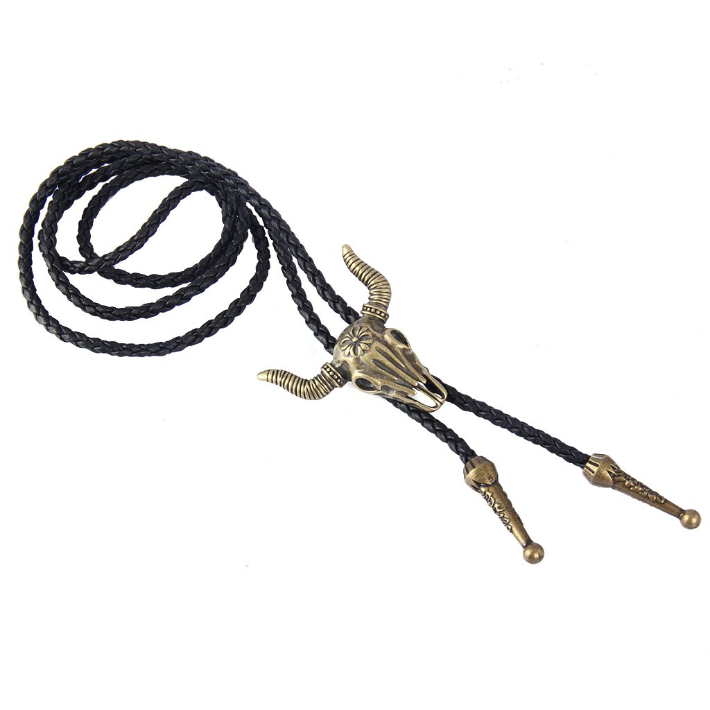 - HIGH QUALITY: The Cow Skull Bolo Tie is made of antique silver plated alloy, nikle free, no cadmium, lead, and the black string is made of high quality genuine leather, fit for men or women, a special apparel accessory in your shirt.