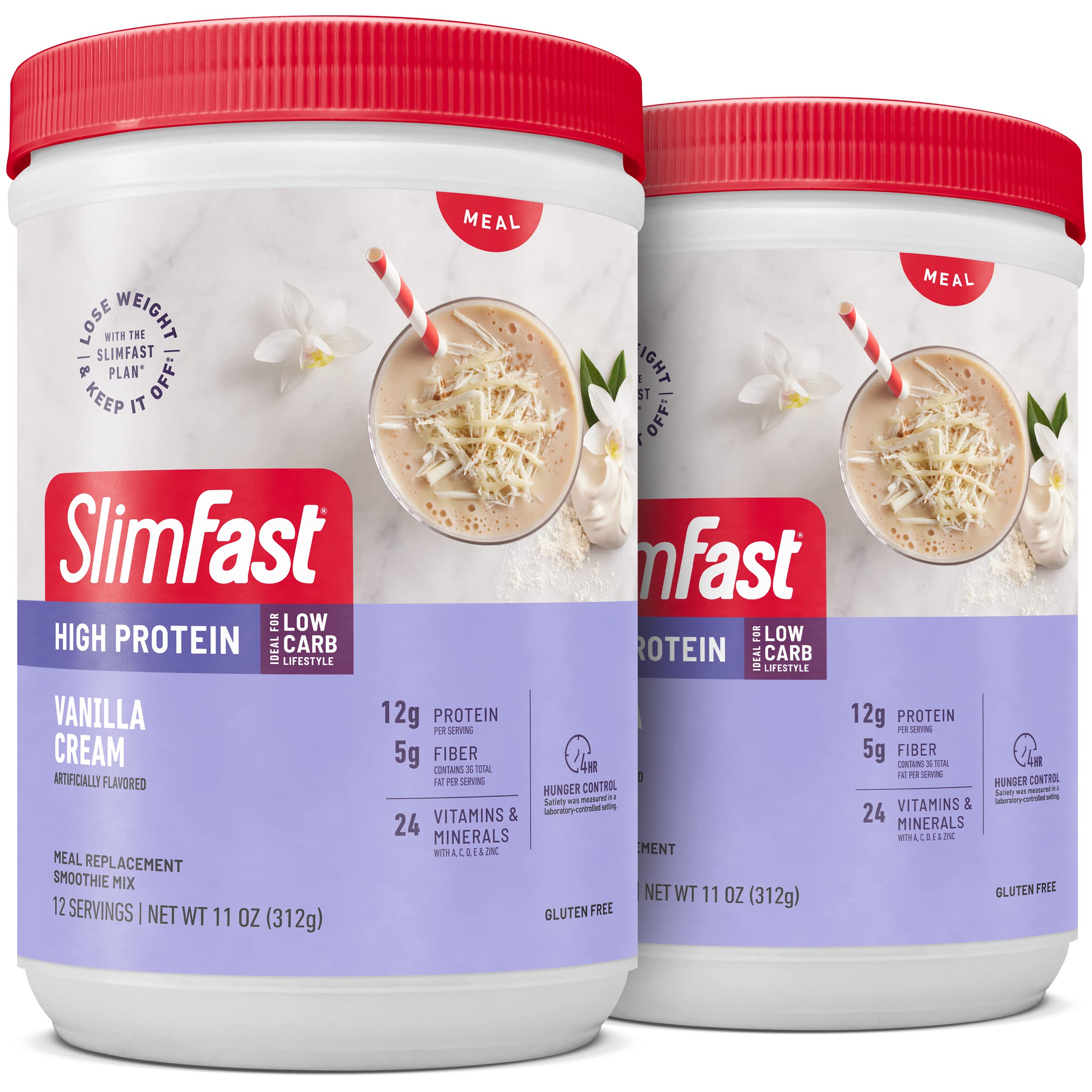 A vital component in proper weight loss is not starving your body of the essential vitamins, protein, and minerals that it needs to produce energy throughout the day. Fortunately, SlimFast has a great-tasting solution for those searching for a meal replacement product. SlimFast Advanced Nutrition Meal Replacement Smoothie Mix Powder is an exceptional meal replacement product that curbs hunger for up to four hours. This rich, decadent, and exceptionally tasty smoothie comes with more protein and less sugar, allowing you to indulge in Vanilla cravings while still shedding those unwanted pounds. The Smoothie Mix Powder by SlimFast contains 20g of protein along with 24 essential vitamins and minerals that provide your body with the nourishment it needs to sustain energy for hours.SlimFast has received multiple awards from Men?s Health and OK! Magazine for best meal plans. This meal replacement smoothie can also be used as an ingredient in several recipes. Additionally, it contains 5 grams of fiber, which helps in digestion.As part of the clinically proven SlimFast Plan, these delicious gluten-free meal replacement smoothies help control hunger. The SlimFast Plan is proven to help you lose weight fast and keep it off. With clinical studies, independent researchers confirm that SlimFast works. The SlimFast Plan makes losing weight as easy as 1 ? 2 ? 3: simply enjoy one of your favorite 500-calorie meals, replace two meals a day with SlimFast shakes or smoothies and indulge in three SlimFast snacks to satisfy your hunger. It?s easy to start any time ? just Pick A Date, Lose The Weight!
