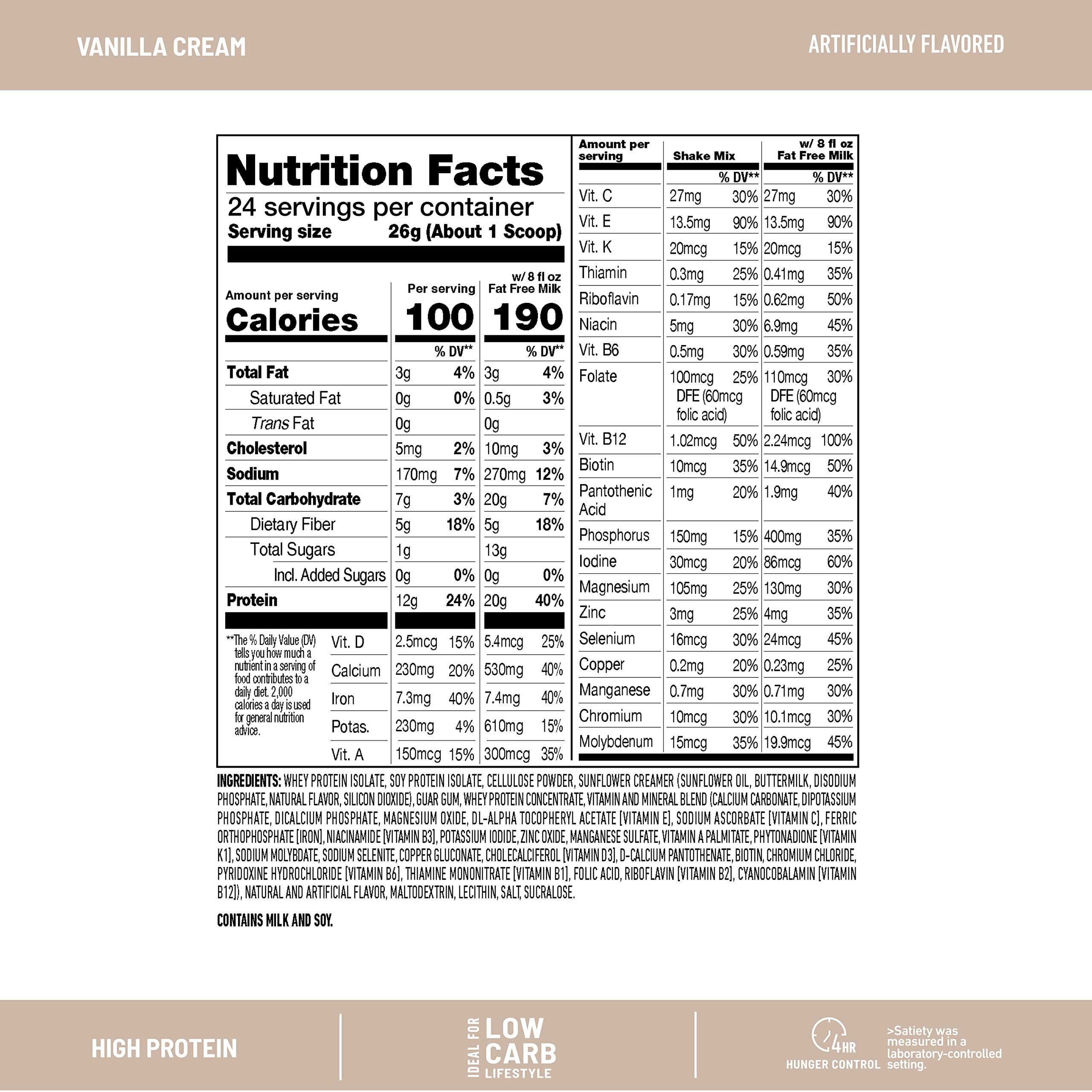- HIGH PROTEIN SHAKE: SlimFast High Protein Meal Replacement Shakes are the perfect diet friendly smoothie mix. Each serving is packed with 20g of Protein when combined with 8 oz of Fat Free Milk to keep you full for hours with a decadent creamy vanilla flavor to satisfy your sugar cravings.