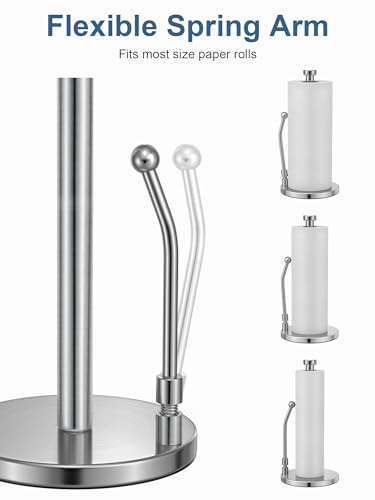 - Premium Roll Dispenser: Stable weighted base with suction cups to stay the paper towel holder in place when you are tearing paper sheets. It also prevents the mental scratching of your countertop or table.
