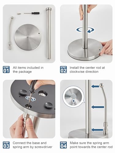 - Suction Cups Design: Equipped with 4 suction cups under the base, ensuring a firm grip on countertops, dinner tables, etc. Avoids sliding and skidding, a must-have standing paper towel holder for your home.