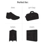 - Fits in all shoes sizes, including Kids; effectively attacks odors in sneakers and everyday footwear, as well as gym and gear Bags