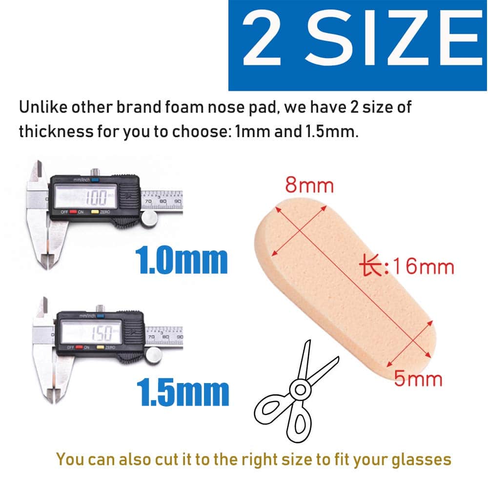 - ??Considerate design?Unlike other brand foam nose pad, we got 2 size (1mm and 1.5mm ) of thickness for you to choose. can be applied to fix your glasses steadily and make your nose feel comfortable