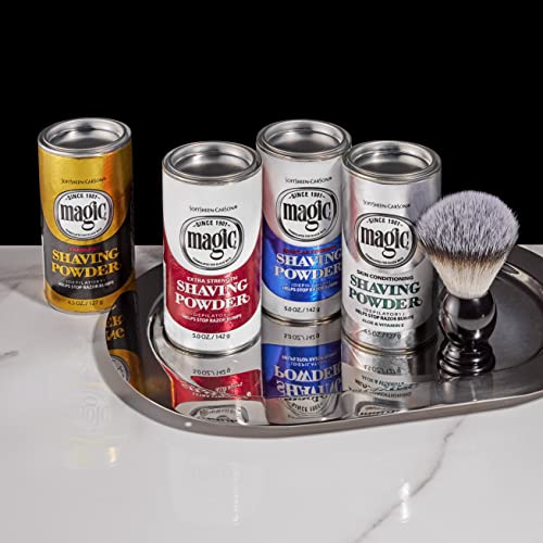 - For All Beard Types: Our Magic Razorless Shaving Powder comes in 4 formulations: Skin Conditioning, With Fragrance, Regular Strength and Extra Strength. Also available in the cream shave formulation.