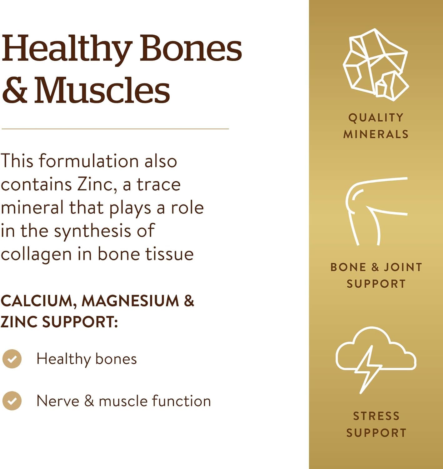 • Plus Zinc; This formulation also contains Zinc, a trace mineral that plays a role in the synthesis of collagen in bone tissue, as well as immune system health