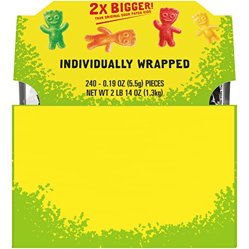 - One 240 count package of SOUR PATCH KIDS Big Individually Wrapped Soft & Chewy Candy